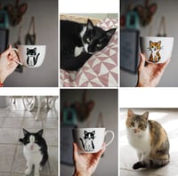 Tazón, taza o bol personalizado con una ilustración de este estilo de tu o tus peludines. Pueden ser gatetes, perros... (Consulta para otros animales.)